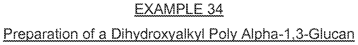 Preparation of a Dihydroxyalkyi Poly Alpha-1 ,3-Glucan This Example describes producing dihydroxypropyl poly a!pha-1 ,3-glucan. This Example is in addition to Example 34, which also describes producing this glucan ether derivative,