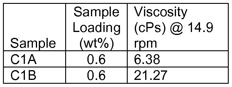 Various sodium carboxymethyl poly alpha-1 ,3-glucan samples (C1A and C1 B) were prepared as described in Example 1 1 . To prepare 0.6 wt% solutions of each of these samples, 0.102 g of sodium carboxymethyl poly alpha-1 ,3-