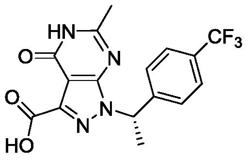 - NJLDIVBSUAJDBZ-QVDQXJPCSA-N CC(Cc1n[n]([C@H](C)c2ccc(C(F)(F)F)cc2)c(N=C(C)N2)c1C2=O)O Chemical compound CC(Cc1n[n]([C@H](C)c2ccc(C(F)(F)F)cc2)c(N=C(C)N2)c1C2=O)O NJLDIVBSUAJDBZ-QVDQXJPCSA-N 0.000 description 1