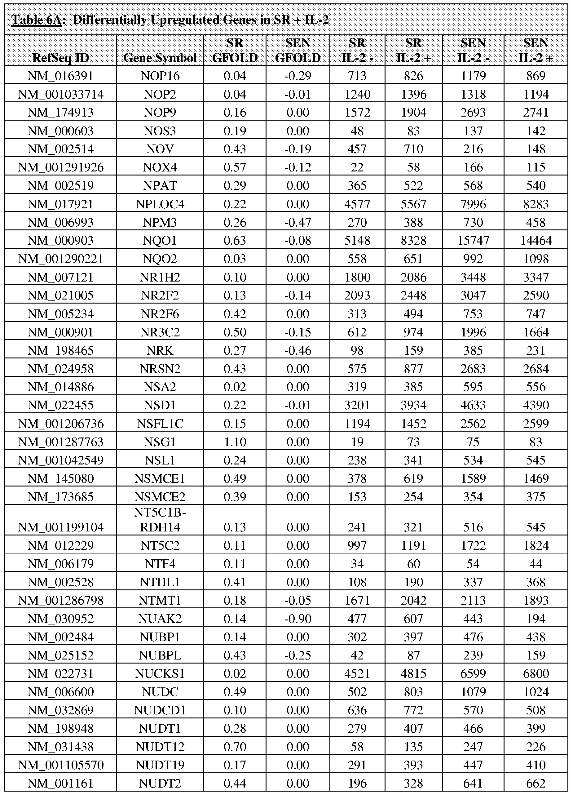 Table 6A: Differentially Upregulated Genes in SR + IL-2