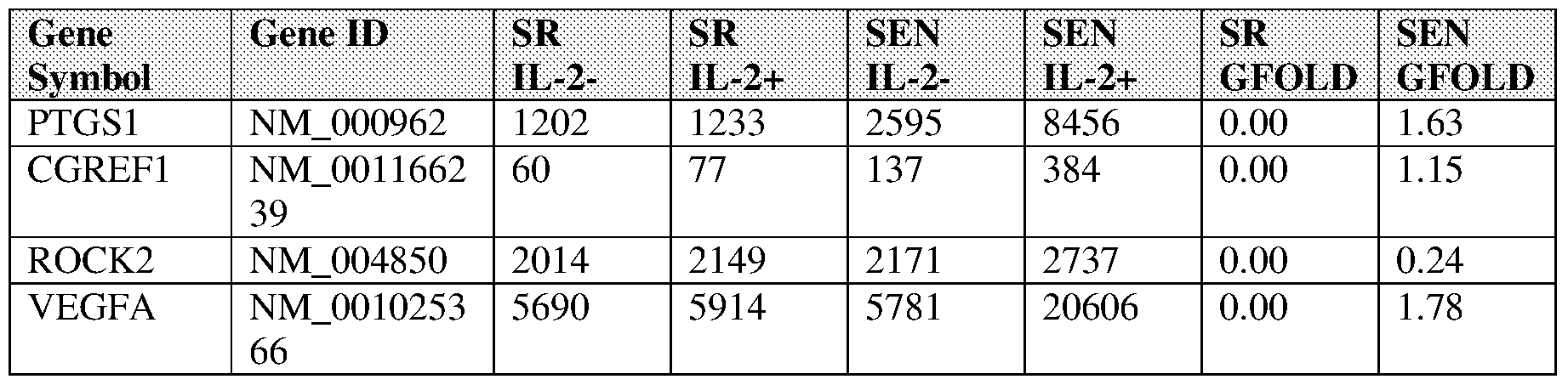 Table 6D: Differentially Downregulated Genes in SEN + IL-2