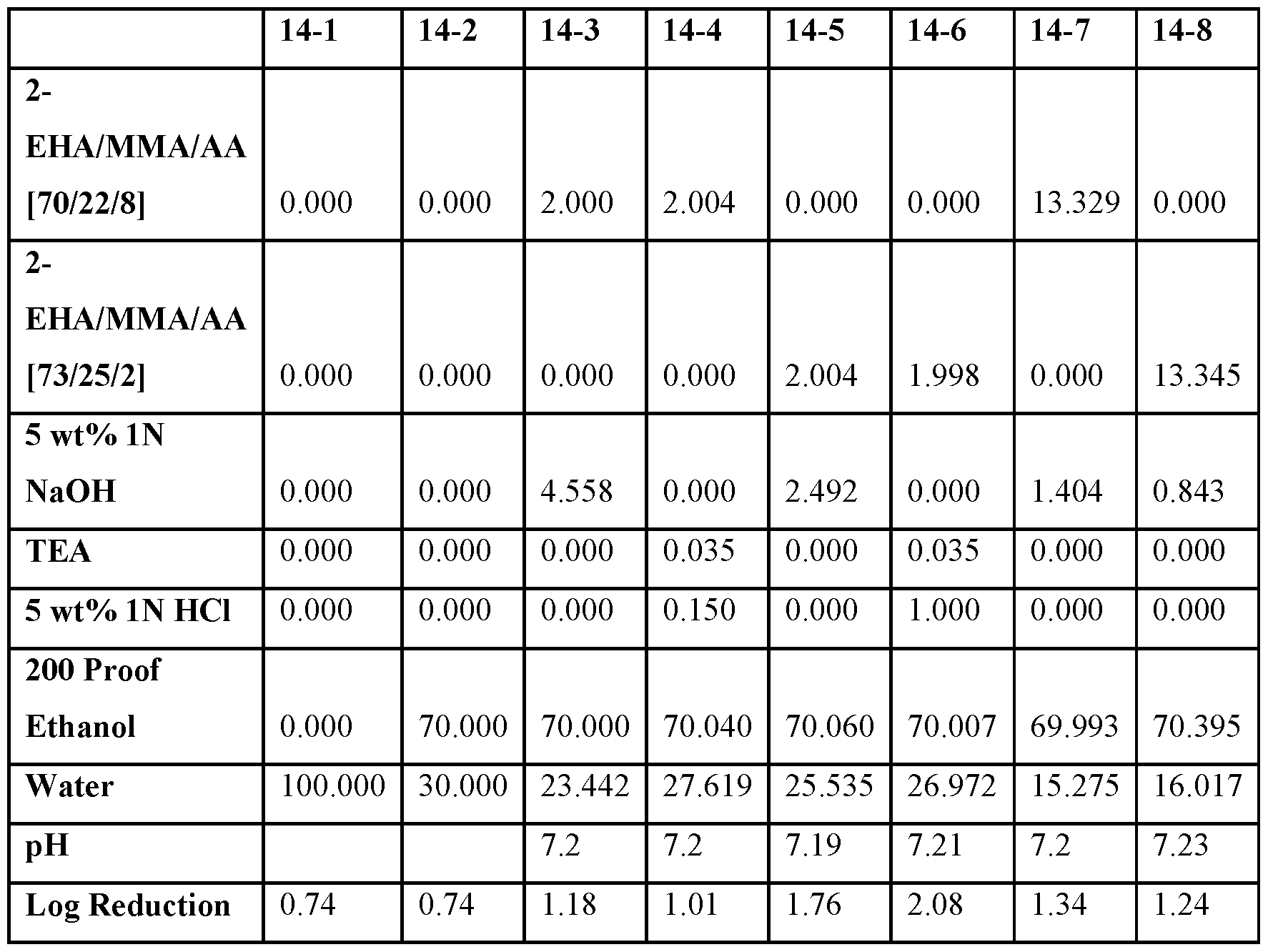- Also disclosed are methods of dislodging at least one spore from a surface the methods including contacting the surface with a composition, the composition including at least about 60 wt% of at least one Ci toC4 alkyl alcohol based on the total weight of the composition; and acrylate copolymer particles dispersed in the alcohol; and subjecting the surface in contact with the composition to mechanical action.