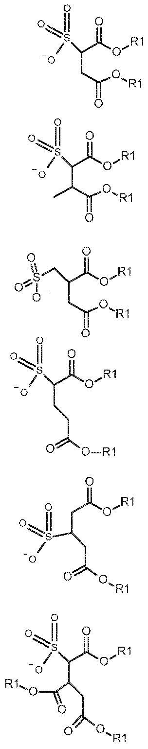 According to the present invention, the ester groups of general formula (1 ) are esterified carboxylic acid groups of sulfobutanedioic acid, (sulfomethyl)-butanedioic acid, methyl- sulfobutanedioic acid, sulfoglutaric acid or sulfotricarballic acid of the compositions as defined above.