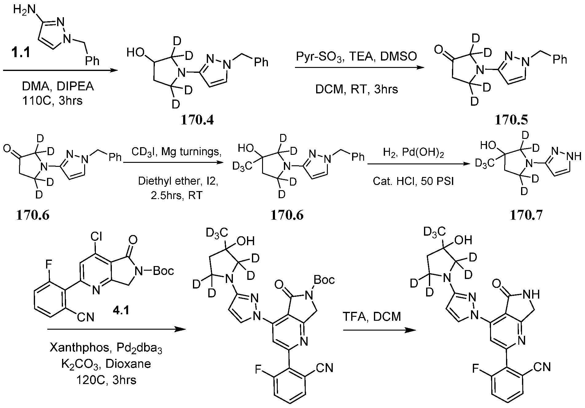 - TXOZXWPRPUBCPP-UHFFFAOYSA-N CC(CC(CC1C)O)N1c(cc1)n[n]1-c(cc(-c(c(C#N)ccc1)c1F)nc1CN2C(OC(C)(C)C)=O)c1C2=O Chemical compound CC(CC(CC1C)O)N1c(cc1)n[n]1-c(cc(-c(c(C#N)ccc1)c1F)nc1CN2C(OC(C)(C)C)=O)c1C2=O TXOZXWPRPUBCPP-UHFFFAOYSA-N 0.000 description 1