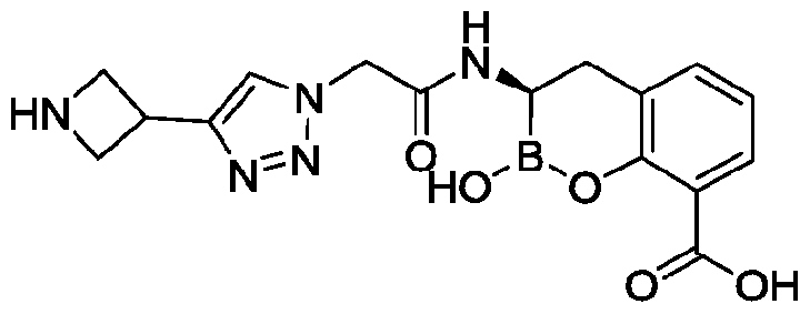 - ZCECQUJAZBIGPQ-ZDUSSCGKSA-N NCC[n]1nnc(C[n]2nnc(CC(N[C@H]3Cc4cccc(C(O)=O)c4OB3O)=O)n2)c1 Chemical compound NCC[n]1nnc(C[n]2nnc(CC(N[C@H]3Cc4cccc(C(O)=O)c4OB3O)=O)n2)c1 ZCECQUJAZBIGPQ-ZDUSSCGKSA-N 0.000 description 1
