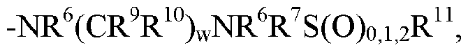 - R d , R 6 and R 7 are independently selected from the group consisting of hydrogen, -CN, -OH, - S(0) 2 R u , -S(0) 2 NH 2 , optionally substituted Ci-C 6 alkyl, optionally substituted alkoxyalkyl, optionally substituted hydroxyalkyl, optionally substituted aminoalkyl, optionally substituted cycloalkyl, optionally substituted heterocyclyl, optionally substituted aryl, optionally substituted heteroaryl, optionally substituted cycloalkylalkyl, optionally substituted heterocyclylalkyl, optionally substituted aralkyl, optionally substituted heteroaralkyl, (poly-ethylene-glycol)-ethyl, and an optionally substituted saccharide;