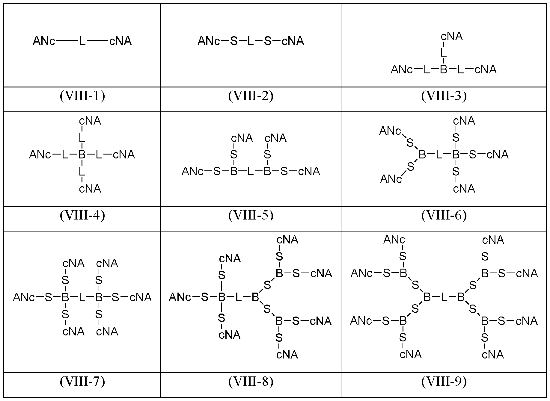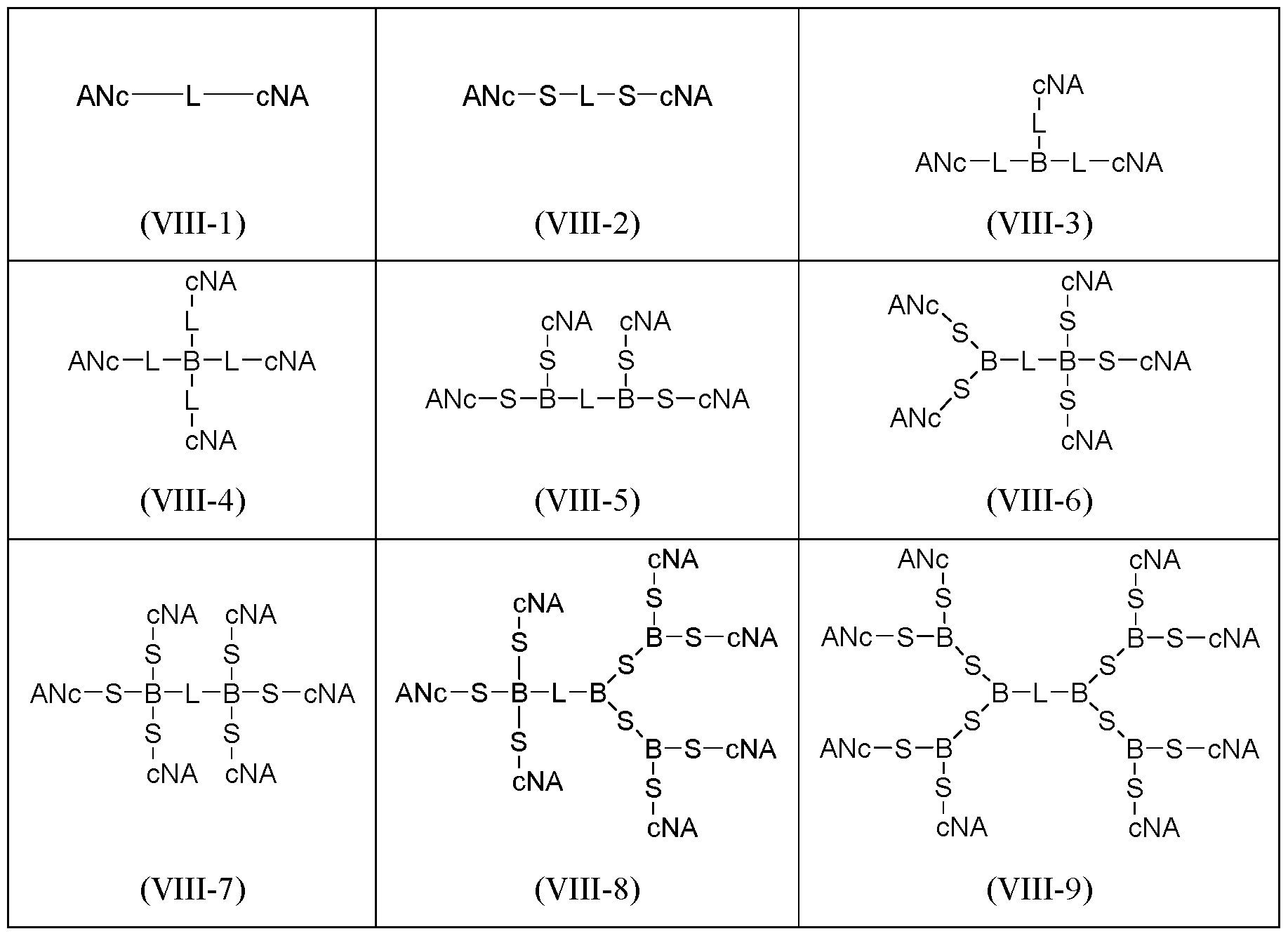 - formula (I) optionally further comprises one or more branch point B, and one or more spacer S;