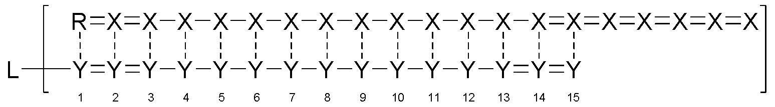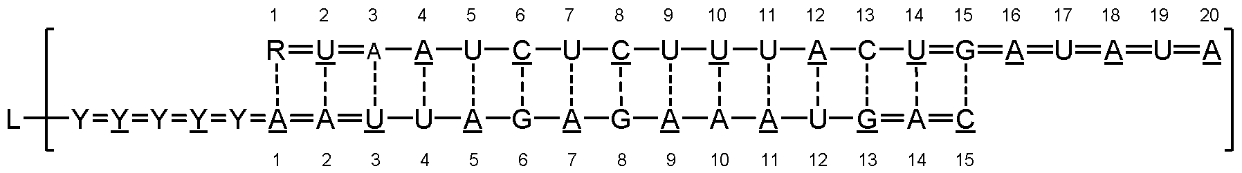 - — represents, individually for each occurrence, a base-pairing interaction or a mismatch.