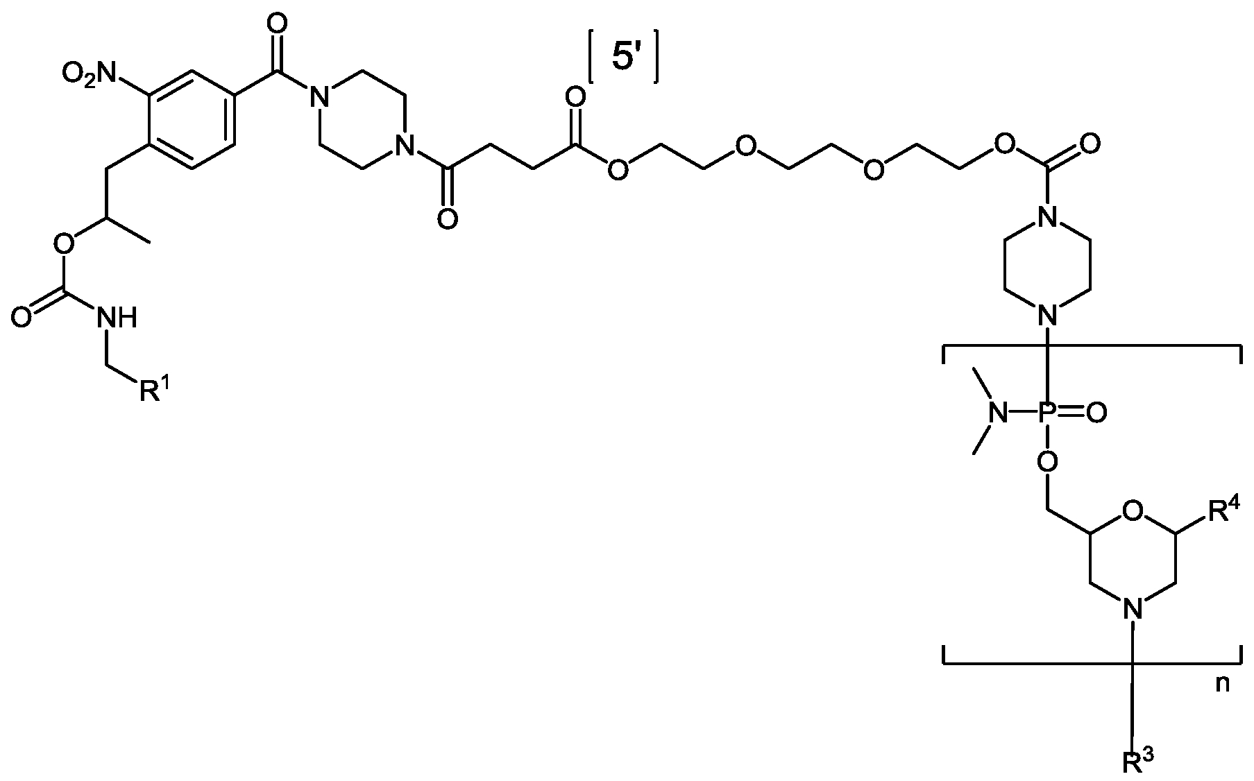 - 0 CC(Cc(ccc(C(N(CC1)CCN1C(CCC(OCCOCCOCCOC(N1CCN(*)CC1)=O)=O)=O)=O)c1)c1[N+]([O-])=O)OC(NC*)=O Chemical compound CC(Cc(ccc(C(N(CC1)CCN1C(CCC(OCCOCCOCCOC(N1CCN(*)CC1)=O)=O)=O)=O)c1)c1[N+]([O-])=O)OC(NC*)=O 0.000 description 46
