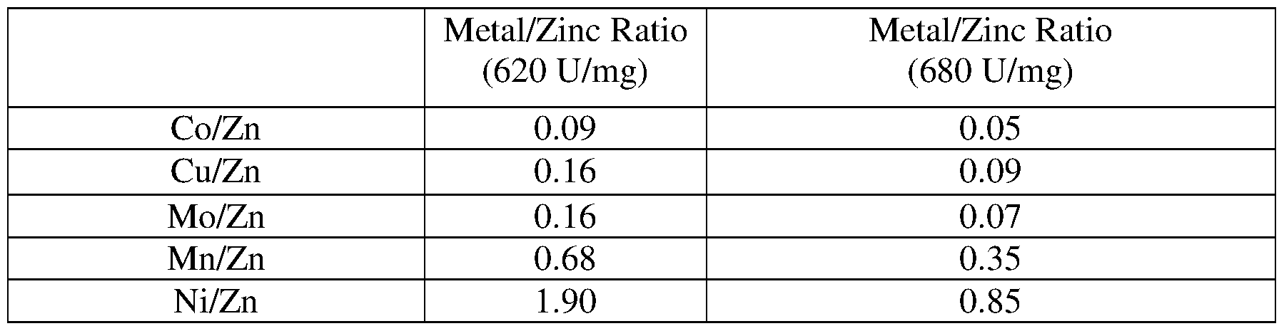 - the rationale of minimizing or reducing the concentration of certain metal ions and/or increasing the concentration of other certain metal ions is to facilitate the enzyme stability and/or activity through interaction with zinc ions.