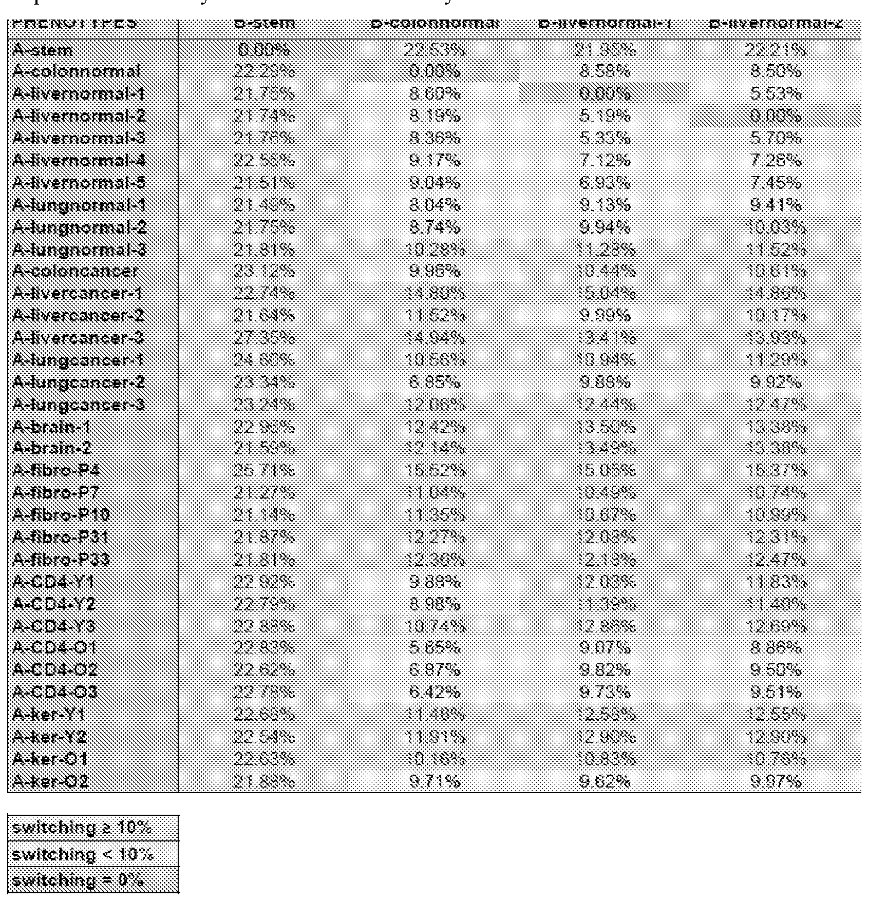 [00363] Supplementary Data 4 shows a matrix of A/B compartment switching frequencies among 34 genomic samples. Supplementary Data 4 is attached hereto in its entirety and is incor orated herein b reference in its entiret .
