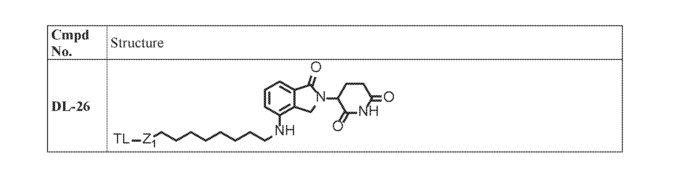 Expression and purification of CRBN-DDB1 were performed as described previously- using Sf9 cells (Tnvitrogen) (E. S. Fischer, K. Bohm, J. R. Lydeard, H. Yang, M. B. Stadler, S. Cavadini, J. Nagel, F. Serluca, V. Acker, G. M. Lingaraju, et al., Nature 2014, 1-16). Example 10. BRD9(bd) & BRD4(1) Ligand-Displacement AlphaScreen
