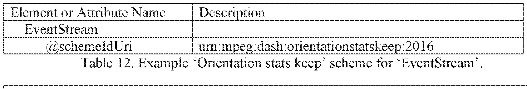 - Various media presentation description (MPD) elements such as descriptor or event at MPD level, Period level or the Adaptation Set level may be used to activate the tracking of user's head orientation statistics information.