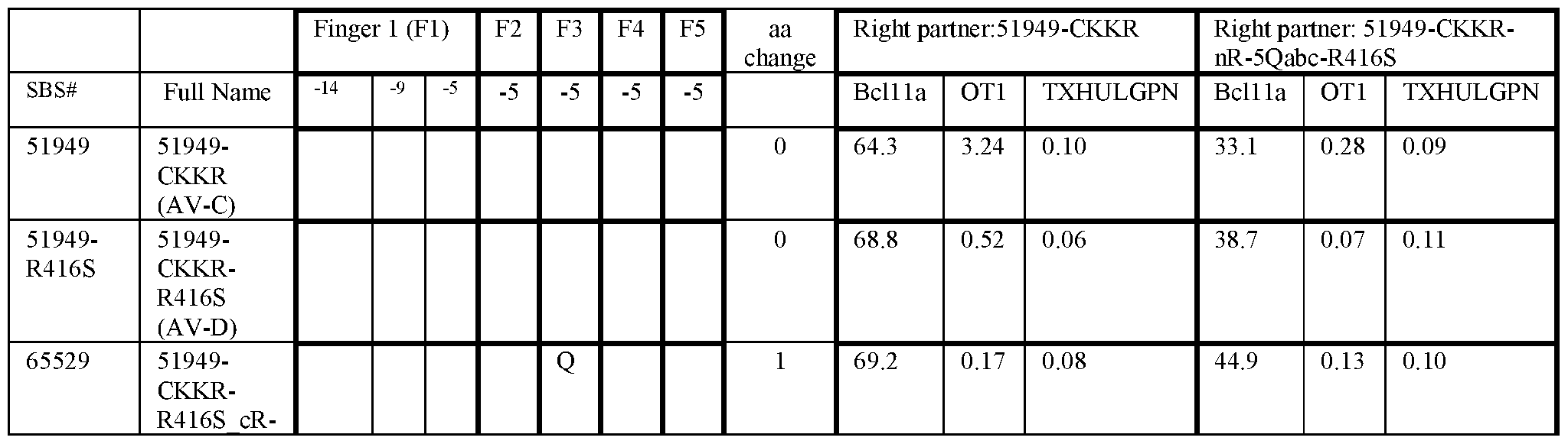 - the cleavage domains described herein may include one, two, three, four, five or more of the mutations described herein and may further include additional known mutations. Therefore, mutations of the invention do not include specific mutations disclosed in U.S. Patent No. 8,623,618 (e.g., N527D, S418P, K448M, Q531R, etc.) when used alone; however, provided here are novel mutants that can be used in combination with the mutants of U.S. Patent No. 8,623,618.