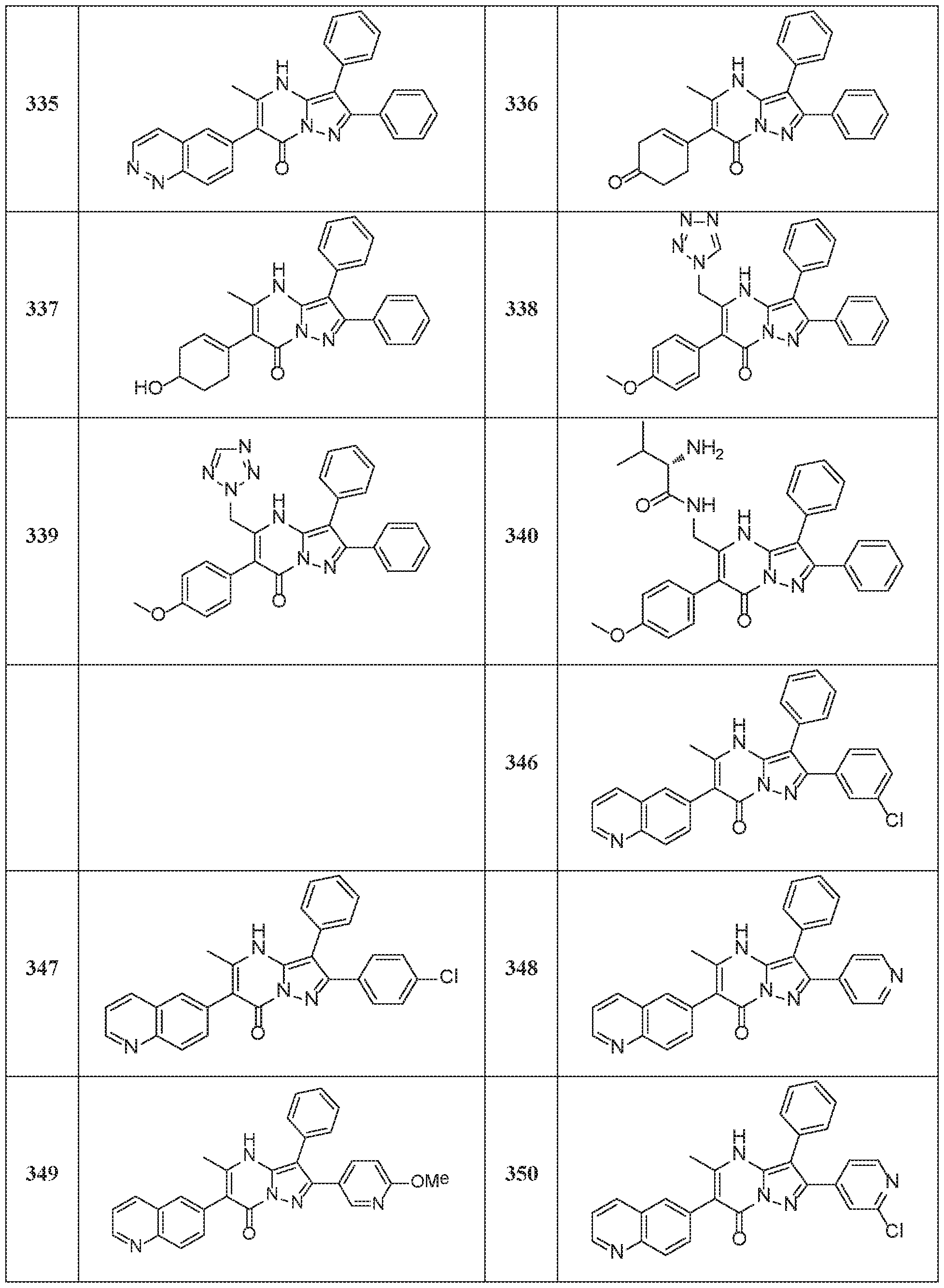 [001836] To a solution of 4-(2-hydroxyethyl)-2,3-diphenyl-6-(quinolin-6- yl)pyrazolo[l ,5-a]pyrimidin-7(4H)-one (90 mg, 0.2 mol) in DCM (5 mL) was added SOC12 (0.5 mL) dropwise. The mixture was stirred at room temperature for 4 hours. The precipitates were filtered, washed with ethyl acetate, and dried under vacuum to give 4-(2-chloroethyl)- 2,3-diphenyl-6-(quinolin-6-yl)pyrazolo[l,5-a]pyrimidin-7(4H)-one (80 mg) as a off-white solid which was used directly in the next step without further purification. LC-MS: m/z 477.0 (M+H)+. [001837] Step F: Compound 352: 4-(2-(1H -tetrazol-l-yI)ethyl)-2,3-diphenyl-6- (quinolin-6-yl)pyrazolo [ 1 ,5-a] py rimid in-7(4H)-one