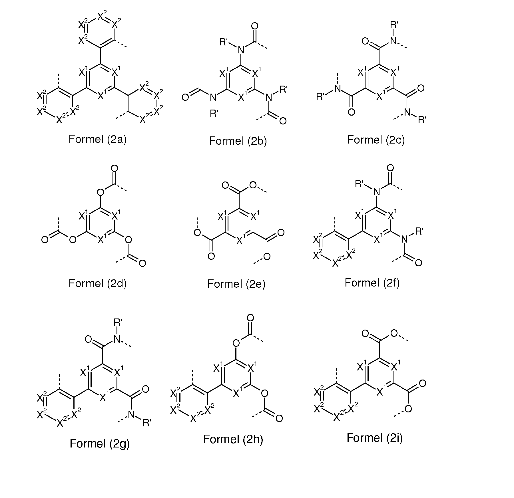 | WO2018041769A1 (en) | Binuclear and trinuclear metal complexes composed of two inter-linked tripodal hexadentate ligands for use in electroluminescent devices | |