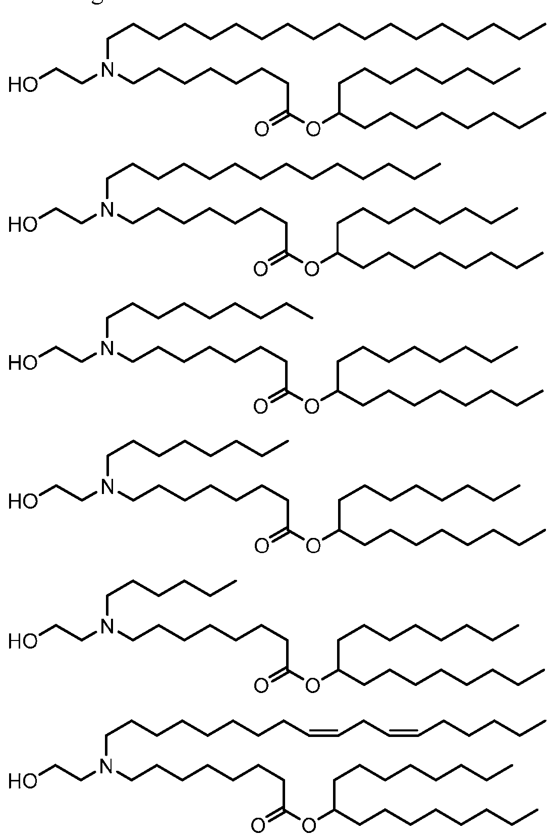 [0073] For example, the ionizable lipid comprises an ionizable amino lipid, e.g., a compound of any of Formulae (I), (IA), (II), (Ila), (lib), (lie), (lid) and (He).