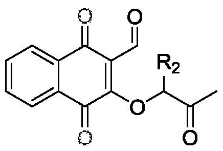 [0179] 2-Hydroxynaphthalene-l , 4-dione (iv, 5 g, 28.7 mmol) was dissolved in 50 mL of DMI at 80-90°C. The