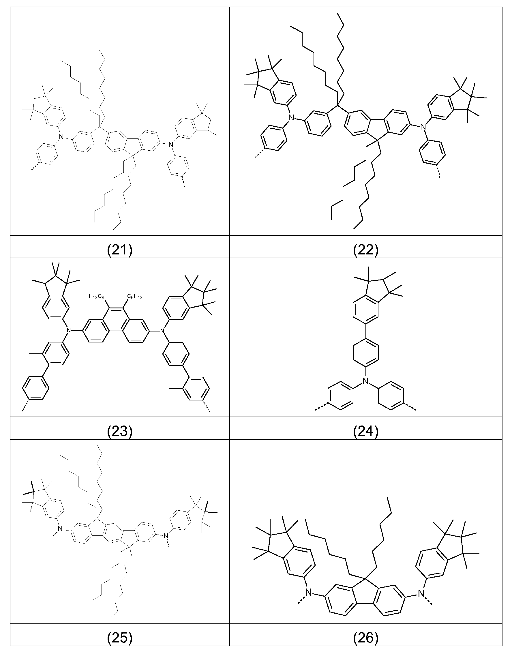 Weiterhin wird gefunden, dass mit Polymeren enthaltend Struktureinheiten, welche eine oder mehrere Gruppen R1, insbesondere Alkylgruppen, als Substituenten am Ringsystem bestehend aus den Gruppen U aufweisen, bessere Eigenschaften der OLEDs erzielt werden als mit Polymeren enthaltend Struktureinheiten, die am Ringsystem bestehend aus den Gruppen U unsubstituiert sind.