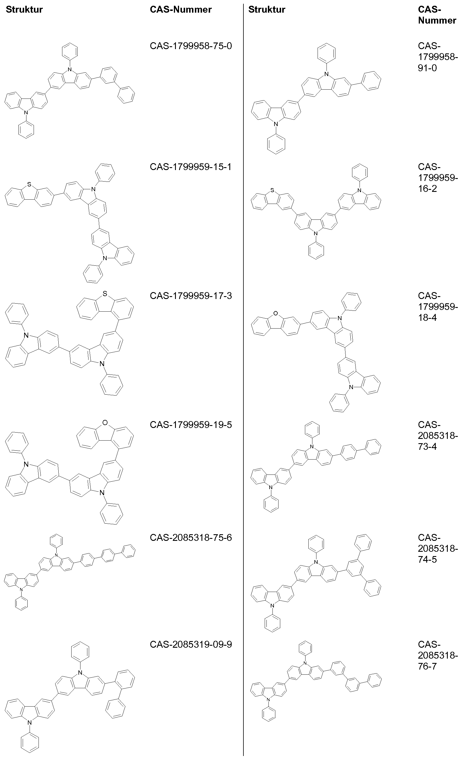 Tabelle 10: Strukturformeln für weitere Materialkombinationen