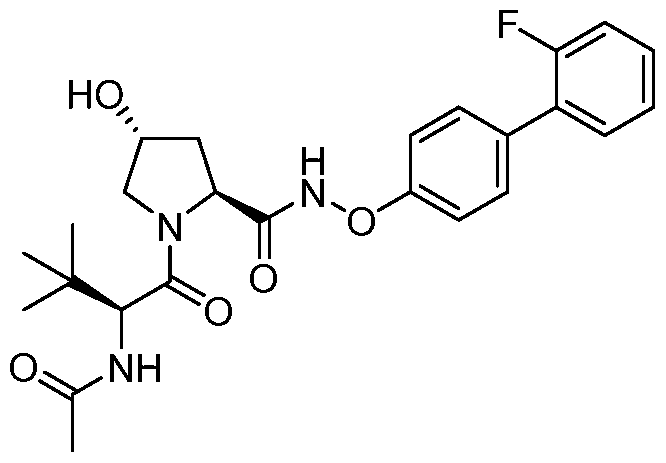 - LVOKFDYVPBWAJG-GTCCEBARSA-N CC(C)[C@@H](C(N(C[C@@H](C1)O)[C@@H]1C(NOc(ccc(-c1ccn[n]1C)c1)c1F)=O)=O)c1cc(C)n[o]1 Chemical compound CC(C)[C@@H](C(N(C[C@@H](C1)O)[C@@H]1C(NOc(ccc(-c1ccn[n]1C)c1)c1F)=O)=O)c1cc(C)n[o]1 LVOKFDYVPBWAJG-GTCCEBARSA-N 0.000 description 1