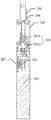 接下来,请参阅图7及图8分别示出的电子烟的一种结构示意图,如图7及图8所示,电子烟由电子烟本体以及电子烟滤嘴组成,电子烟本体设有滤嘴安装组件201,滤嘴安装组件201设有滤嘴容纳腔,电子烟滤嘴可拆卸的安装