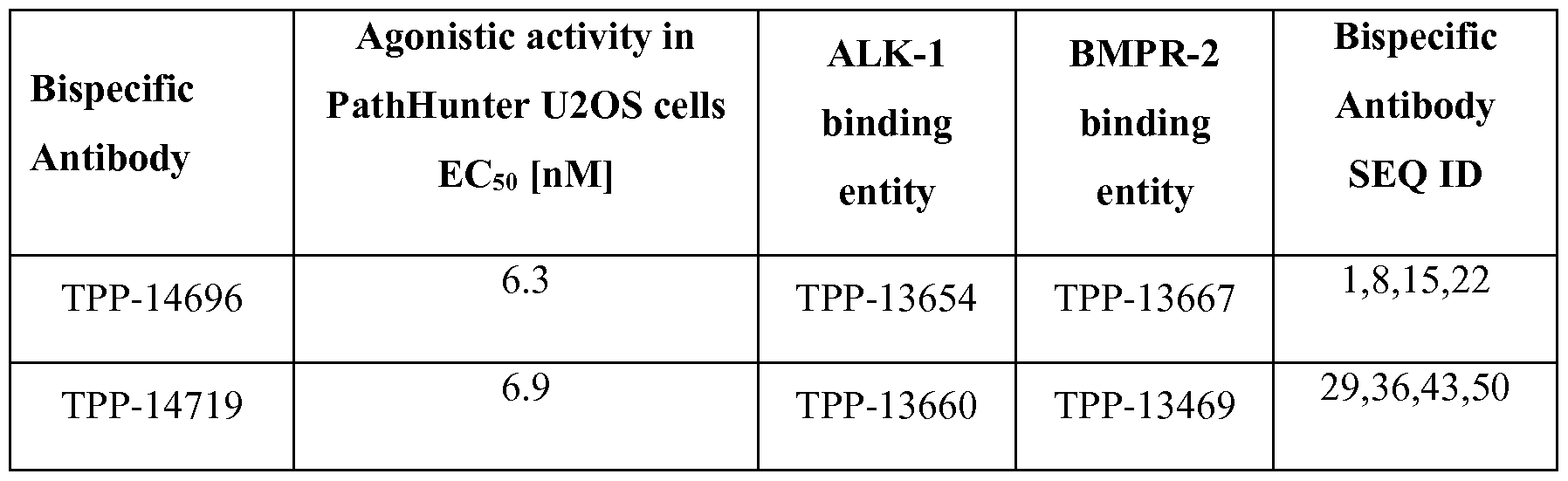 - the BsAB promotes dimerization of ALK-1 and BMPR-2 and this can be shown for example in the PathHunter Dimerization assay using the U20S ACVRLl/BMPR-2 Dimerization Cell Line.