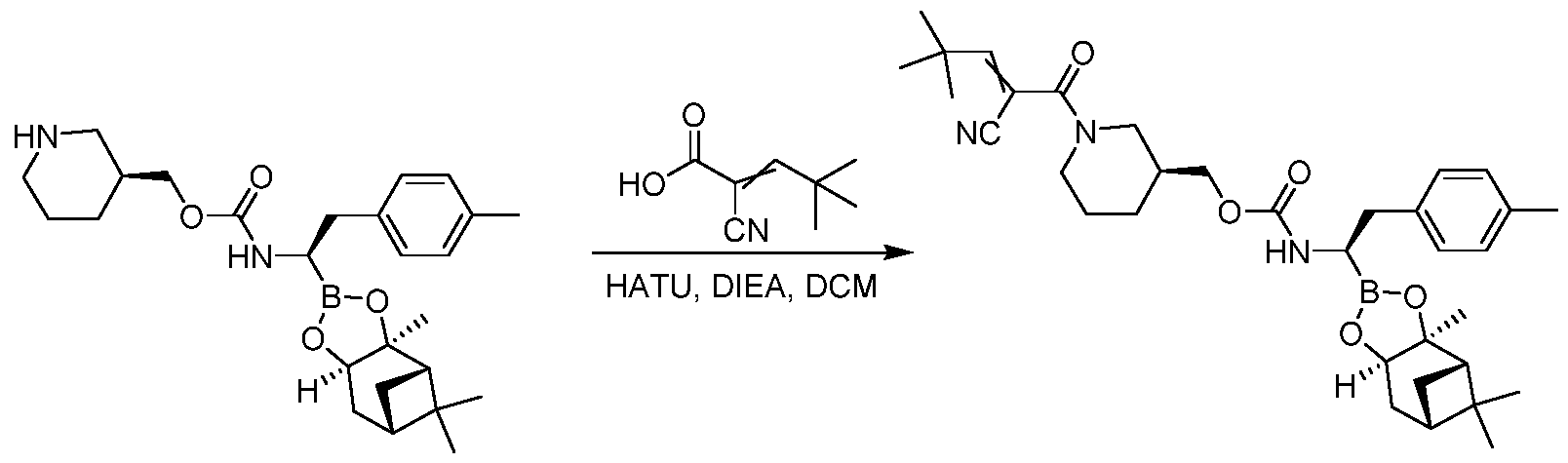[(lS,2S,6R,8S)-2,9,9-trimethyl-3,5-dioxa-4-boratricyclo[6.l. l.0A[2,6]]decan-4-yl]ethyl]carbamate was prepared using the procedure described in Ex 69, step 1, except that (3S)-piperidin-3-yl N-[(lR)-2- (cyclopent-l-en-l-yl)-l-[(lS,2S,6R,8S)-2,9,9-trimethyl-3,5-dioxa-4-boratricyclo[6.l. l.0A[2,6]]decan-4- yl]ethyl]carbamate was substituted for (3S)-piperidin-3-yl N-[(lR)-2-[4-(trifluoromethyl)phenyl]-l- [(lS,2S,6R,8S)-2,9,9-trimethyl-3,5-dioxa-4-boratricyclo[6.l. l.0A[2,6]]decan-4-yl]ethyl]carbamate.