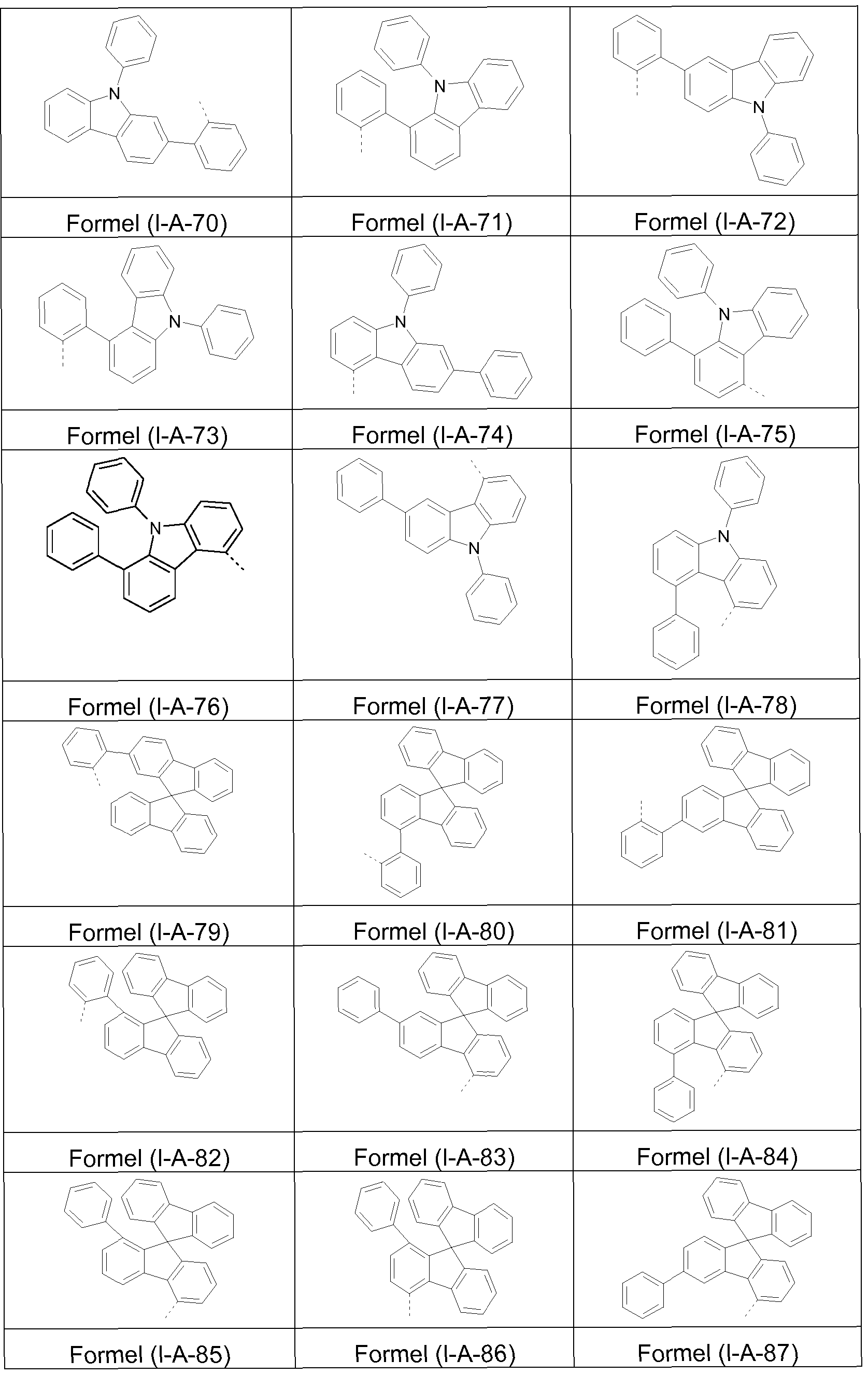 Ar2 entspricht bevorzugt der oben genannten Formel (A), besonders bevorzugt einer der Formeln (A-1 ) bis (A-3). Bevorzugte Ausführungsformen der Gruppen Ar2 sind in der folgenden Tabelle abgebildet: