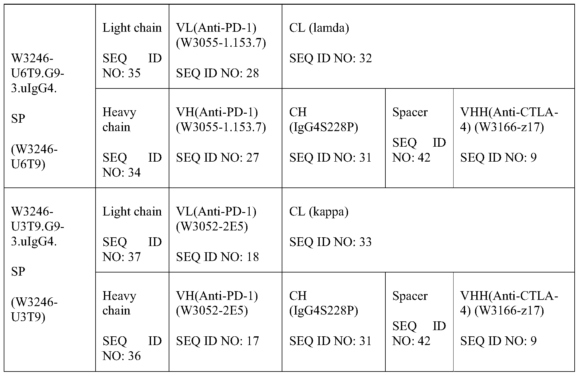 - the CTLA-4-binding domain further comprises one or more amino acid residue substitutions or modifications yet retains specific binding affinity to CTLA-4, and/or the PD-1-binding domain further comprises one or more amino acid residue substitutions or modifications yet retains specific binding affinity to PD-1.