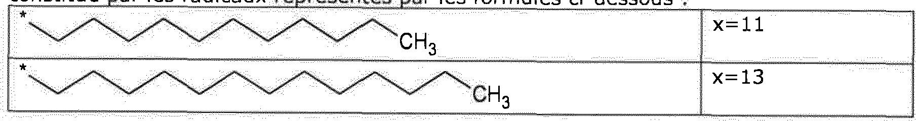 - the composition is characterized in that the hydrophobic radical is a radical of formula I, the ', V or VI in which the GpC radical of formula IV is chosen from the group consisting of radicals in which Cx is chosen from the group consisting of the alkyl radicals represented by the formula below:
