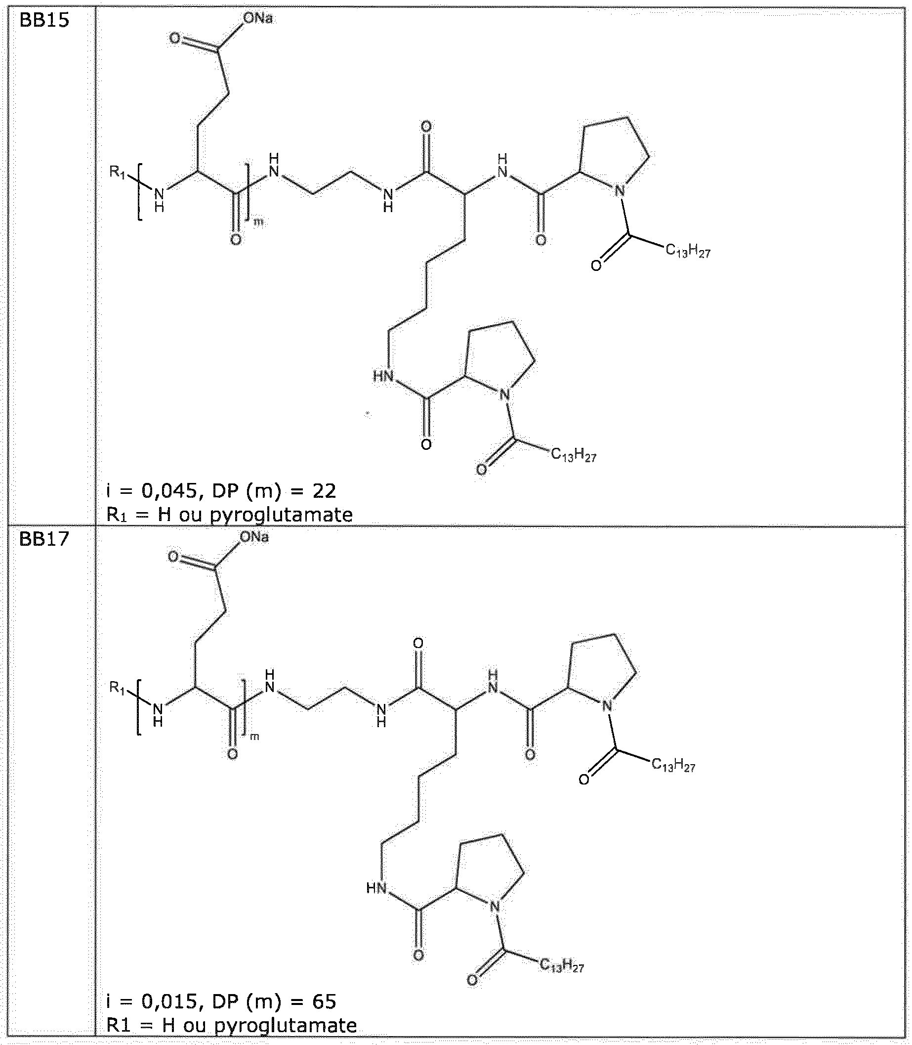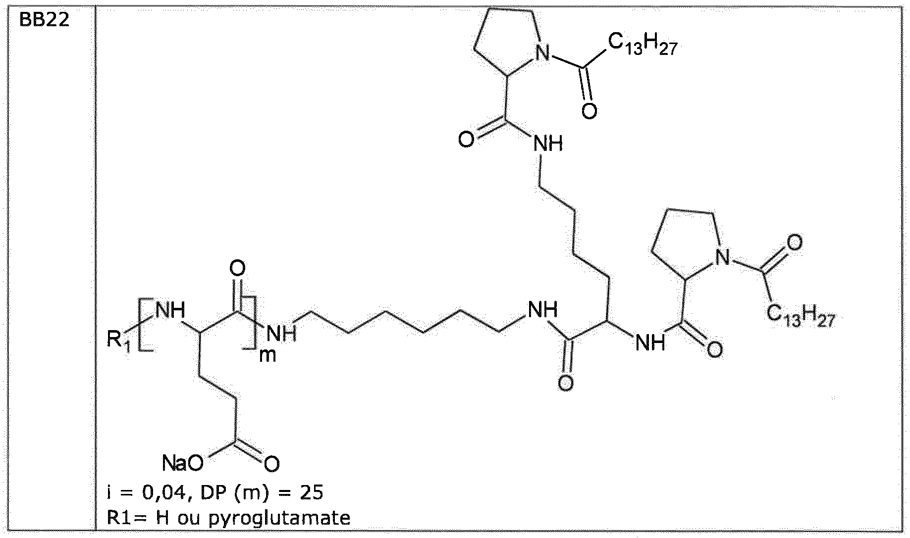 - the composition is characterized in that the hydrophobic radical is a radical of formula I, the ', V or VI in which the GpC radical of formula IV is chosen from the group consisting of radicals in which Cx is chosen from the group consisting of alkyl radicals comprising between 15 and 16 carbon atoms.