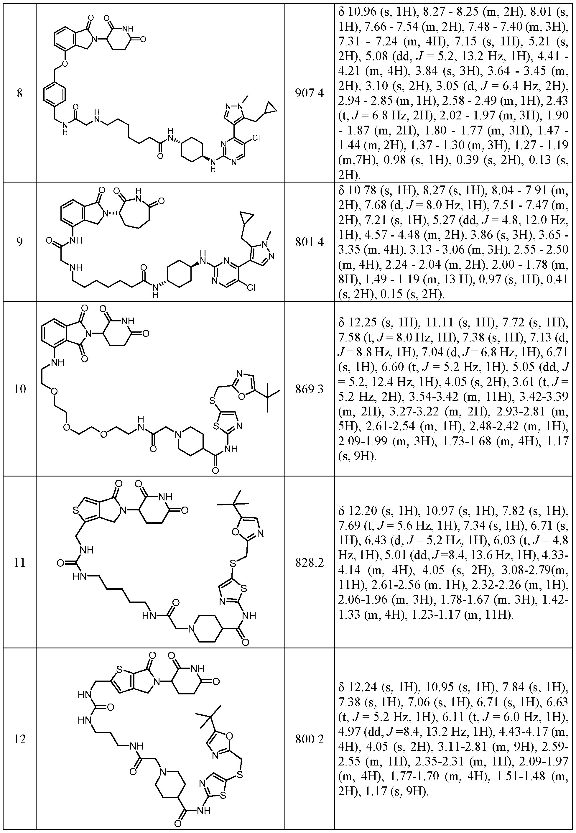 Table 4. Activity of Compounds in CDK9 degradation assay. Compounds tested at 0.1 mM and 1