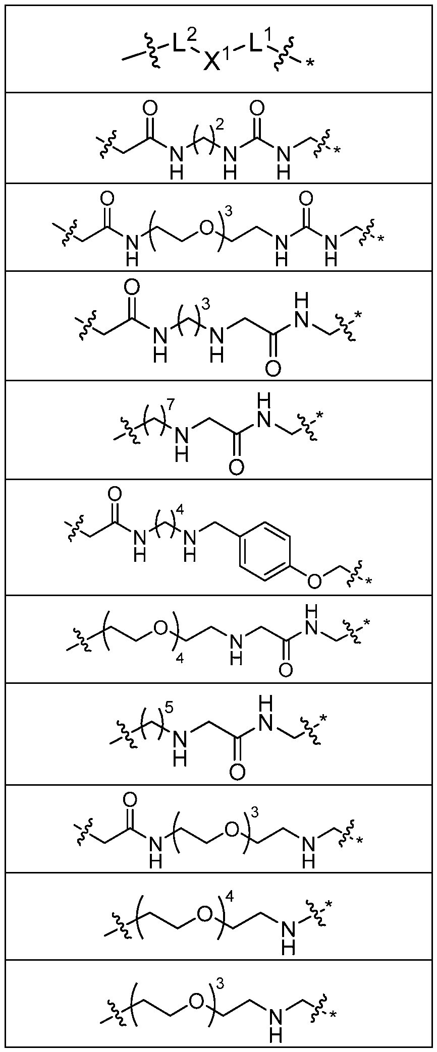 X1 is alkylene or heteroalkylene; X2 is -NHC(=0)-, -NH-, -O-, -NHC(=0)NH- -NHCH2- or -S-; and X3 is -NH-, -0-, or -S-. In some embodiments, when the compound has