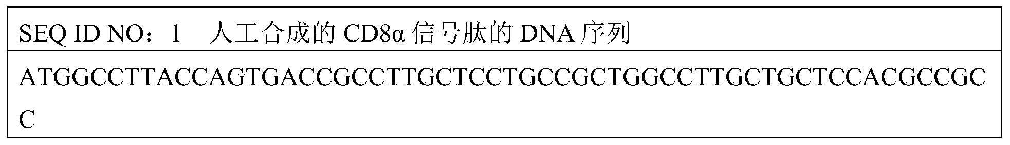 - the amino acid sequence of the chimeric antigen receptor includes the CD8 ⁇ signal peptide, the single chain antibody, the CD8 hinge region, the CD28 transmembrane region, and the CD28 intracellular co-stimulatory domain in order from the N-terminus to the C-terminus. And 4-1BB intracellular co-stimulatory domain and CD3 ⁇ intracellular signaling domain.