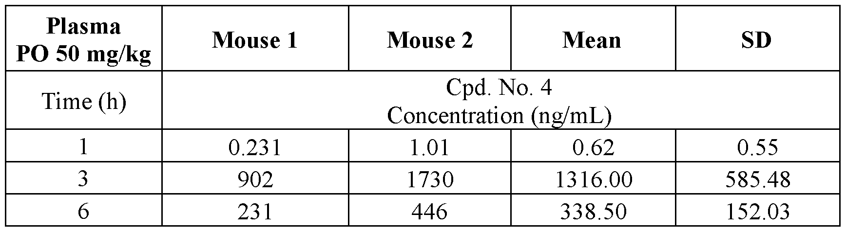 - FIG. 6 is an illustration of a Western blot showing the MDM2, p53, and GAPDH protein levels in RS4;l l cells after treatment with Cpd. B, Cpd. C, Cpd. No. 4, and Cpd. No. 6 for 2 hours.
