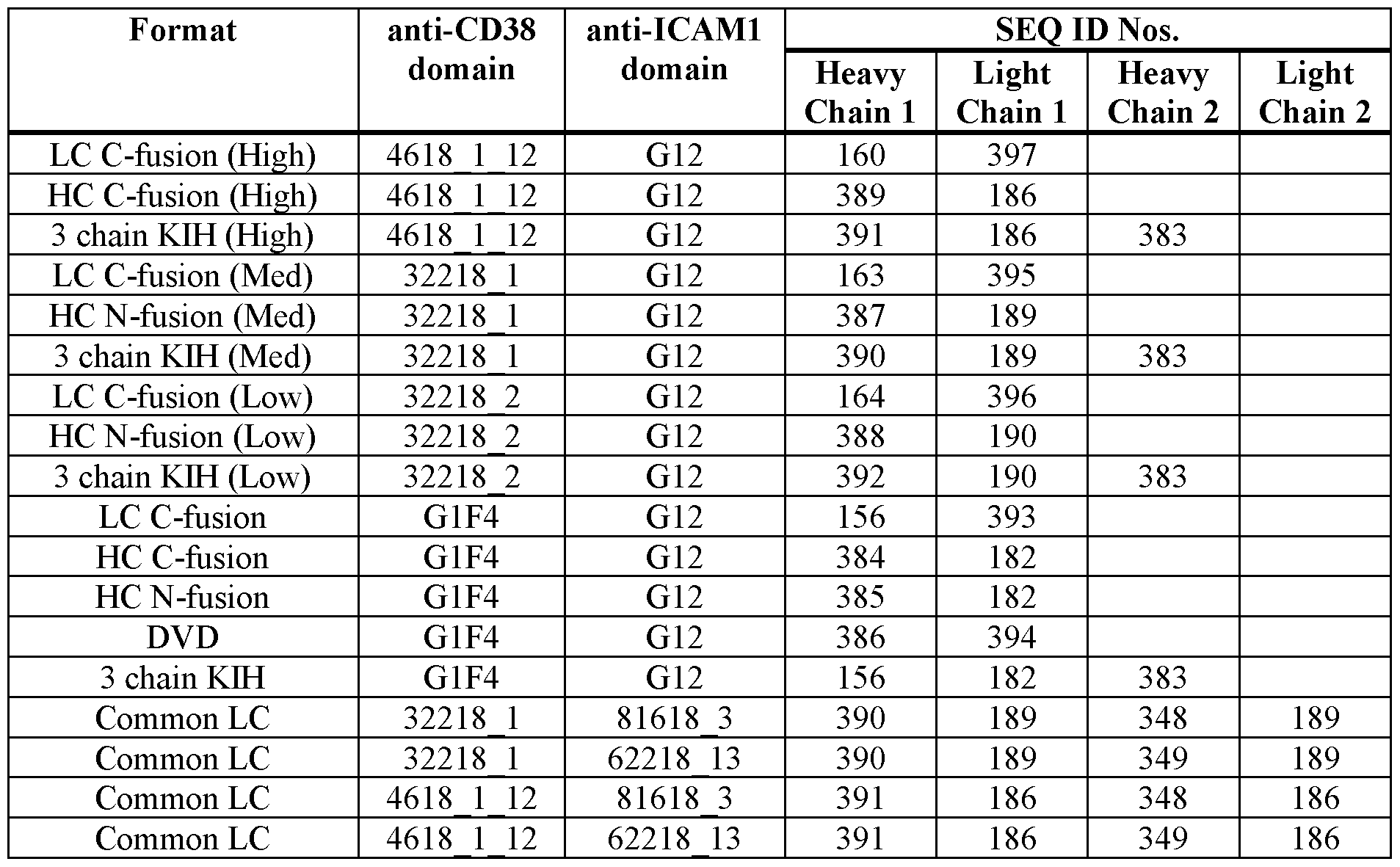 CD38/ICAM1 bispecific antibodies on ICAMhigh/CD38l0" cells, mutations were introduced