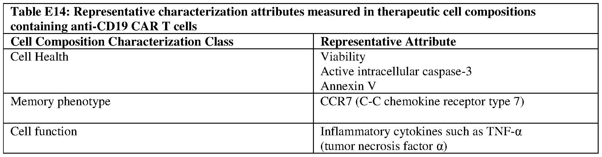 pharmacokinetic profile, estimated progression free survival, event free survival, overall survival, laboratory anomalies and health related quality of life. Efficacy was evaluated according to the 2014 Lugano criteria (Cheson BD, et al. J Clin Oncol. 2014; 32:3059-3067) and CRS was graded using the Lee criteria (Lee DW, et al. Blood. 2014;124:188-195). NE were adverse events (AE) that were considered related to CAR+ T cell compositions. AEs, except for CRS, were graded using the National Cancer Institute Commin Terminology Criteria for Adverse Events, version 4.03. Subjects were monitored for treatment-emergent AEs (TEAEs) for 90 days after CAR+ T cell composition