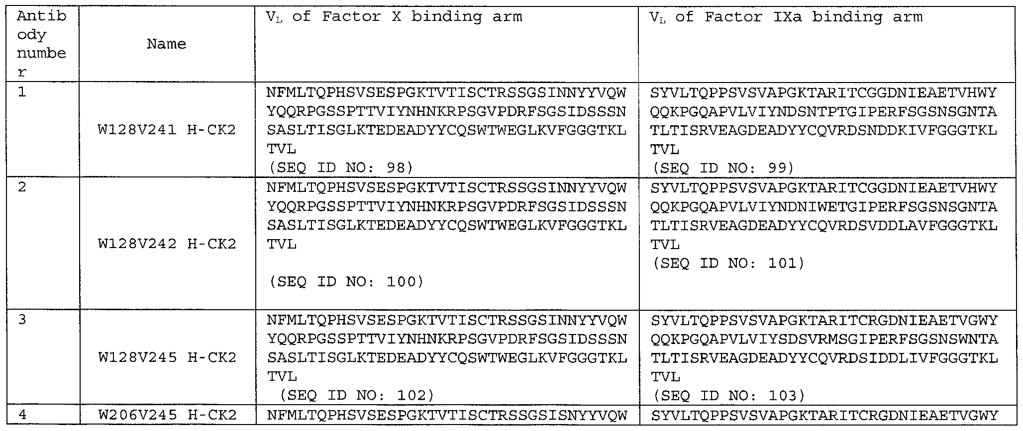 - the present invention provides bispecific antibodies that bind to Factor IXa and Factor X.