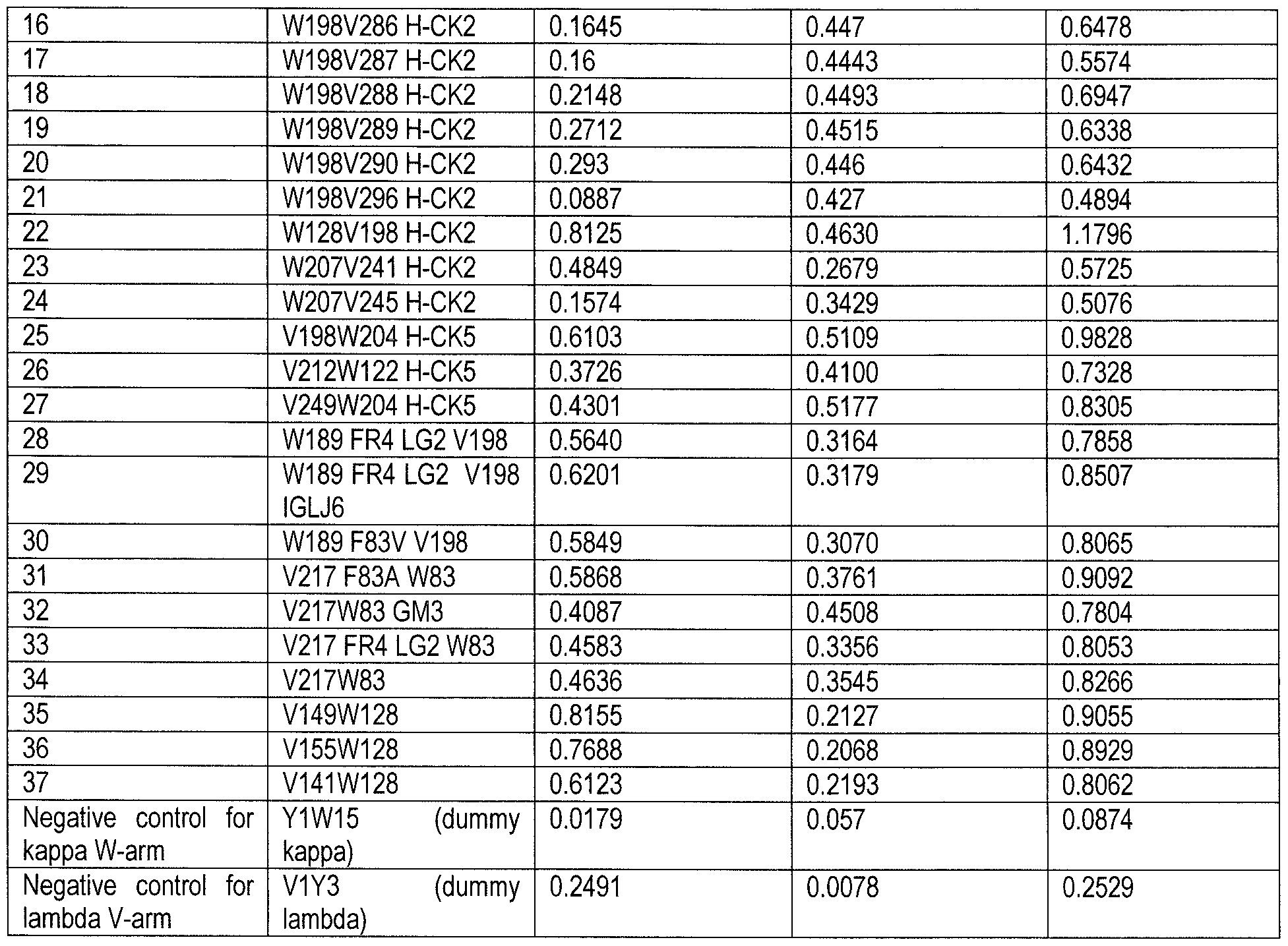 - C07K2317/92—Affinity (KD), association rate (Ka), dissociation rate (Kd) or EC50 value
