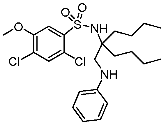 - OVVDIKIRGRUVJD-UHFFFAOYSA-N CCCCC(CCCC)(CN(c1ccccc1)c(cc1SC)c2cc1OCC(C(OC)=O)O)N(Cc(cc1)ccc1OC)S2(=O)=O Chemical compound CCCCC(CCCC)(CN(c1ccccc1)c(cc1SC)c2cc1OCC(C(OC)=O)O)N(Cc(cc1)ccc1OC)S2(=O)=O OVVDIKIRGRUVJD-UHFFFAOYSA-N 0.000 description 1