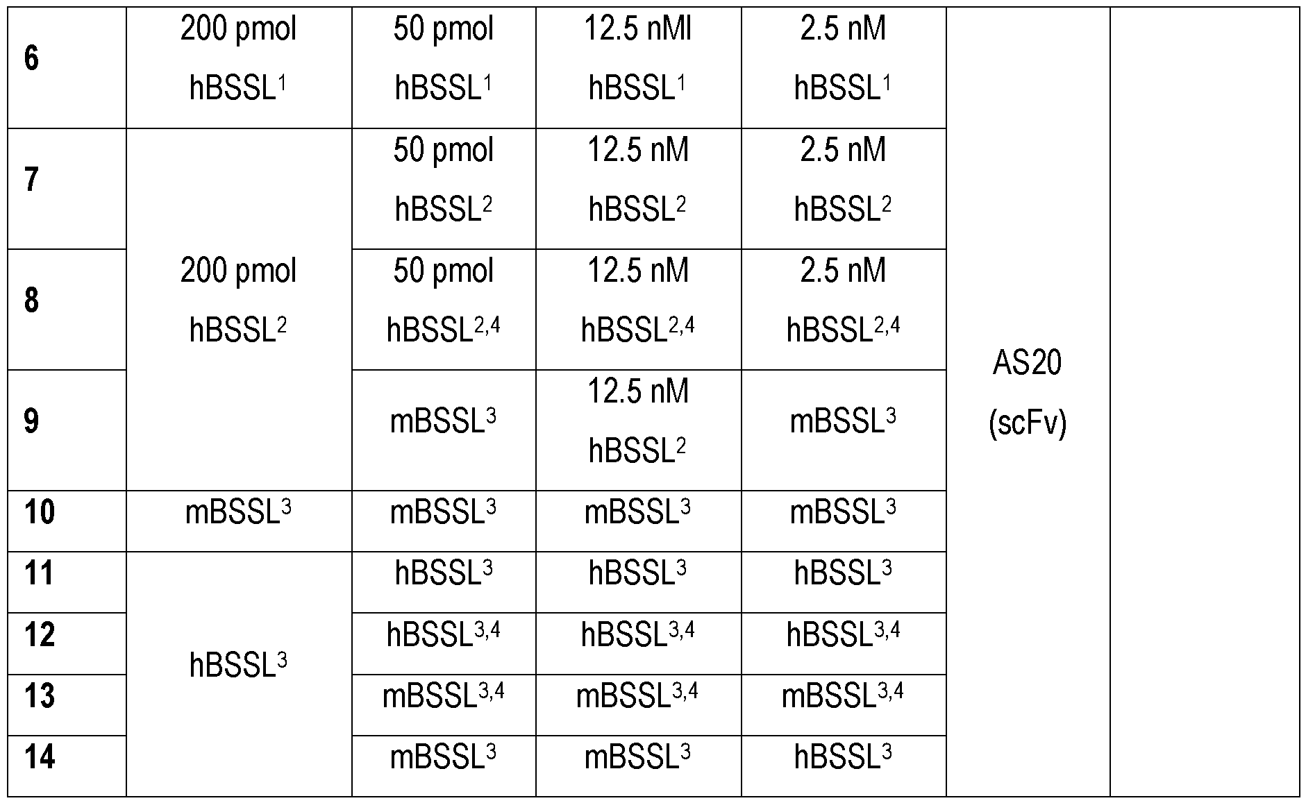 Figure 5 shows the results of a HTRF based competition assay analyzing the binding of AS20 scFv to mouse and human BSSL.