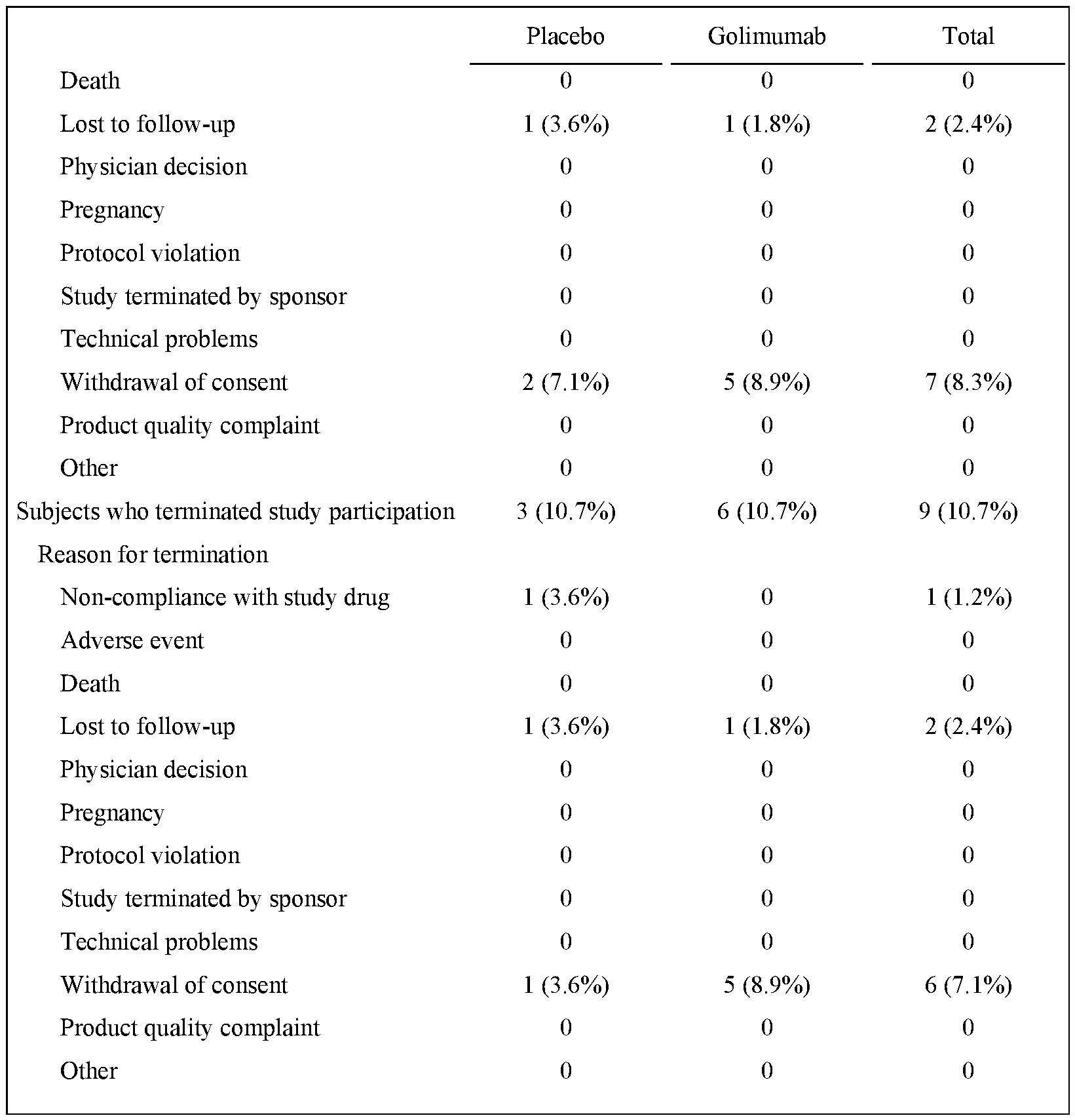 The study met its primary and secondary endpoints where the efficacy profile of golimumab was robust and consistent in its different aspects: