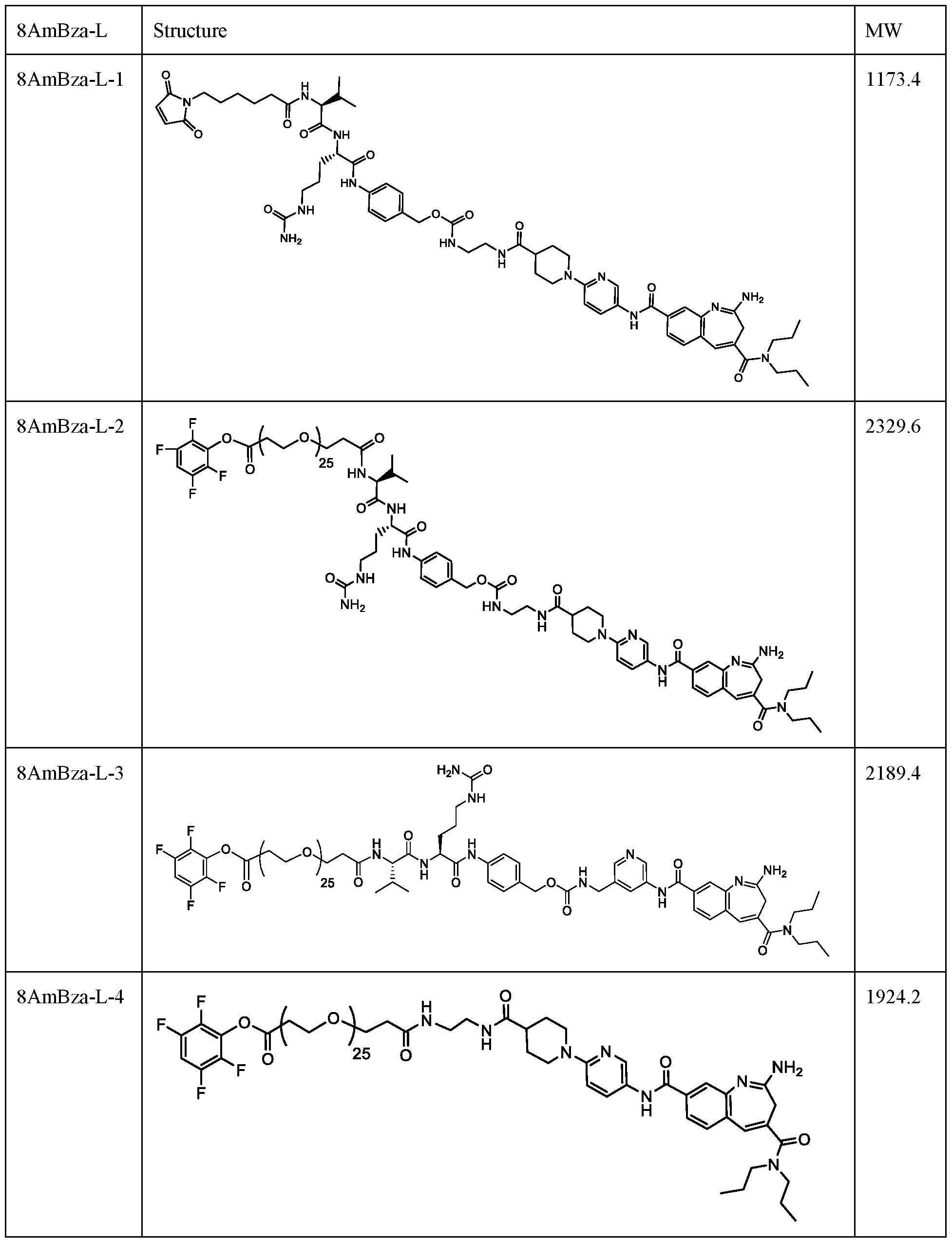 - Another aspect of the invention is an 8-amido-2-aminobenzazepine-linker compound.