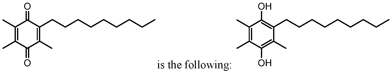 - “Hydroquinone form” indicates the form of the compound when a two electron reduction of the quinone ring is effected, providing a net conversion of the two oxo groups to two hydroxy groups.