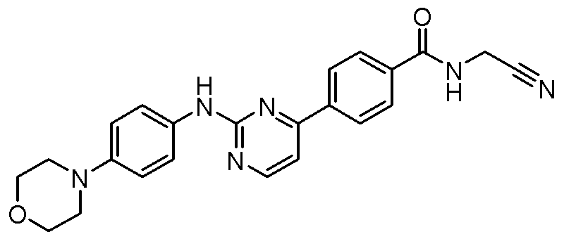 - Momelotinib refers the JAK inhibitor N-(cyanomethyl)-4-(2-((4- morpholinophenyl)amino)pyrimidin-4-yl)benzamide, having the following structural formula: