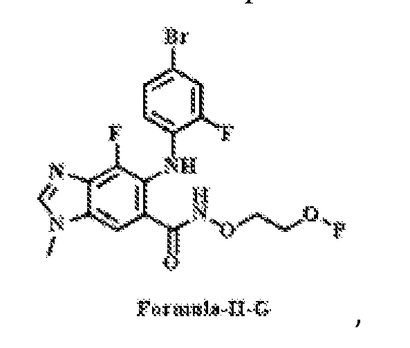 - Another aspect of the specification discloses a process for the preparation of Binimetinib, comprising: i) brominating a compound of Formula-XVIII-G to obtain a compound of Formula-II-G, wherein P is a protecting group to obtain a compound of Formula-II ii) converting a compound of Formula-II-G to Binimetinib.