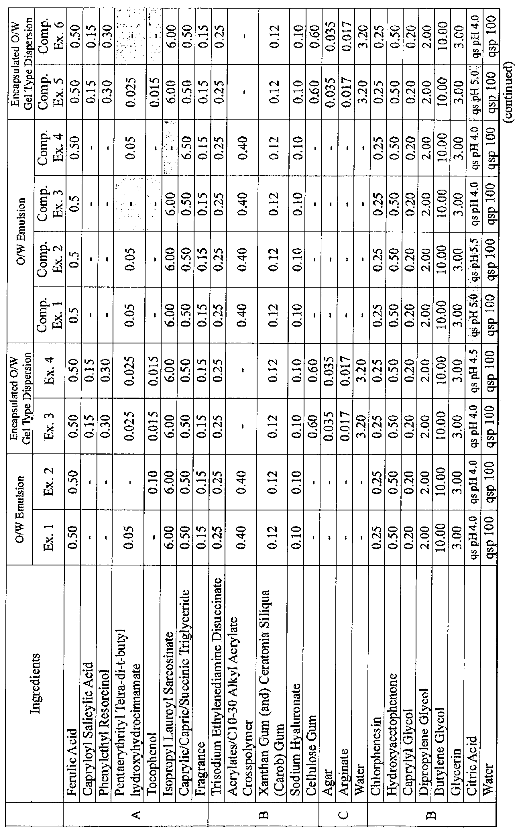- composition according to the present invention may be is in the O/W form, preferably an O/W emulsion or an O/W dispersion, and more preferably an O/W gel emulsion or an O/W gel dispersion.