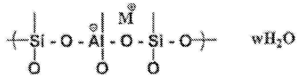 - the silate network may include silicate and aluminate tetrahedrals linked alternately by sharing all oxygens, with Al 3+ and Si 4+ in IV-fold coordination with oxygen.