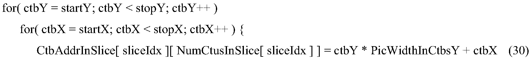 - the rule specifies that, for iteratively determining information about the one or more rectangular slices, a variable indicating a tile index is updated only for slices having indices that are smaller than a value that is equal to a number of slices in the video picture minus 1.